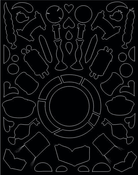 COMPLETE THE COLLAGE BY PLACING THE STICKERS ONTO THE MATCHING SHAPE OUTLINES.